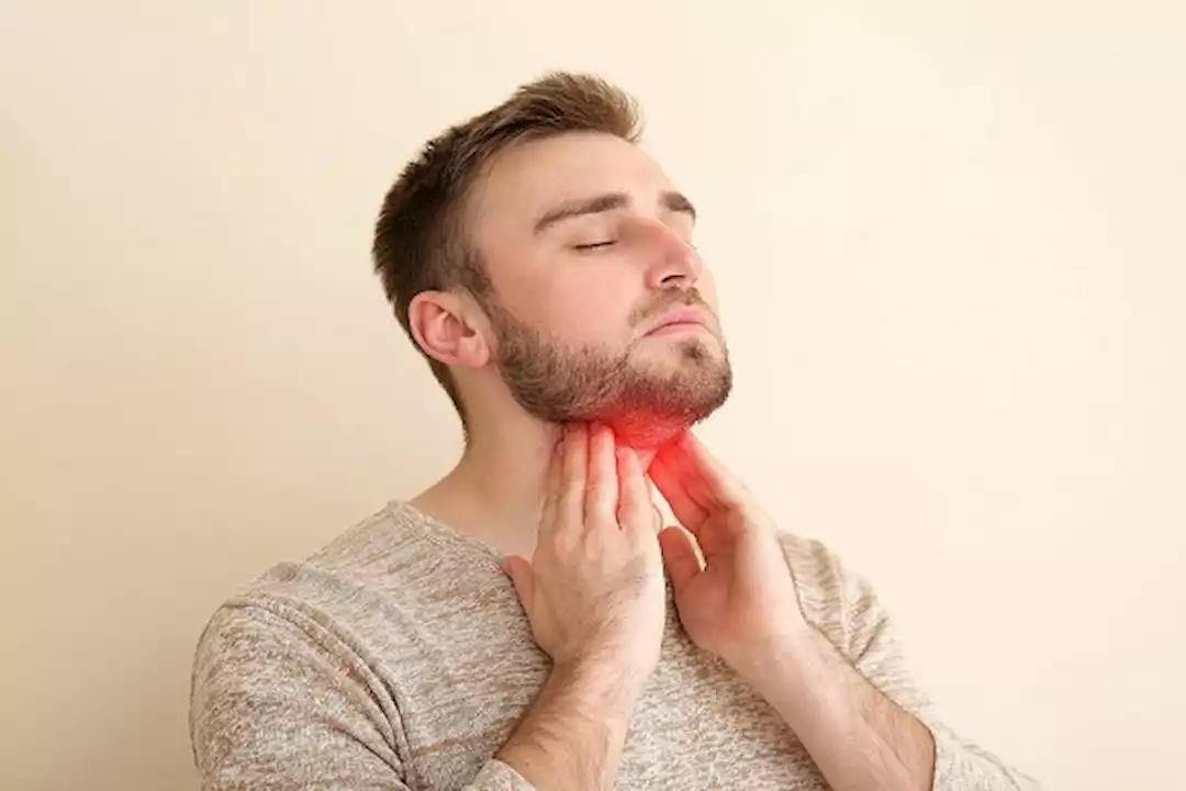 الالتهاب يجعل الغدة حساسة، ما يسبب ألمًا في المنطقة المصابة عند لمسها أو أثناء الحركة، وقد يمتد الألم إلى الفك أو الكتف.