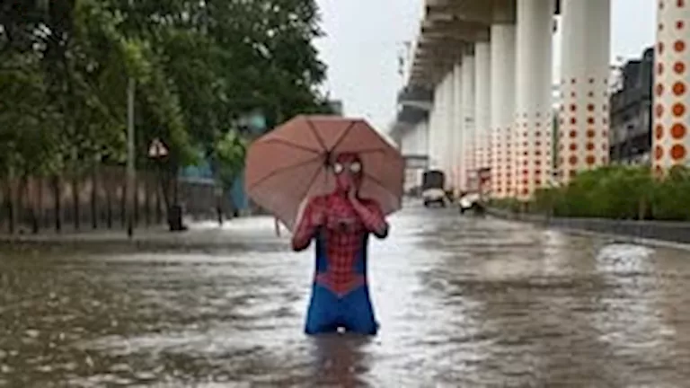 في واقعة نادرة شهدتها مدينة مومباي الهندية، ظهر رجل مرتديا زي “سبايدر مان”، وسط الفيضانات التي خلفتها الأمطار الغزيرة، إذ حاول المساعدة في تصريف مياه الأمطار المتراكمة في أحد الشوارع المغمورة بالمياه.
