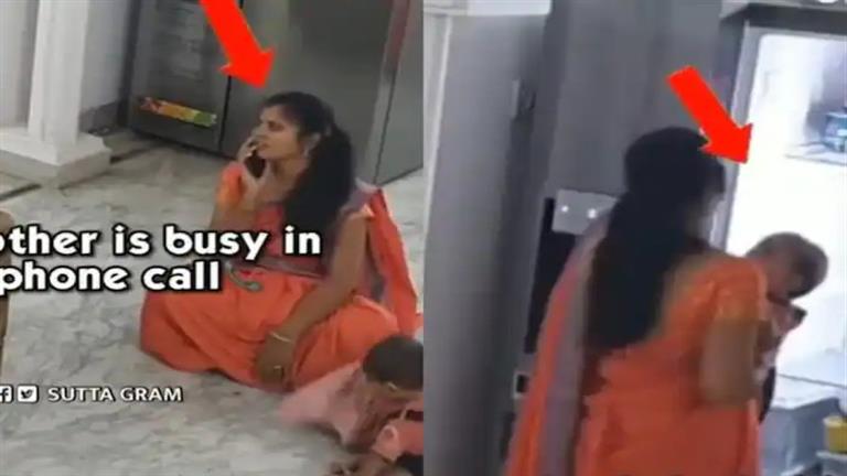 وبحسب موقع india، فإن الفيديو الذي وثق الواقعة أظهر المرأة وهي ممسكة بالهاتف ومندمجة في الحديث مع الطرف الآخر، وكان في يدها الخضروات، فيما يلهو ابنها بجوارها.