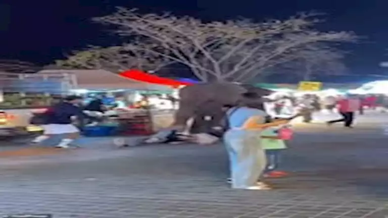 في واقعة مرعبة، دهس فيل بعض السياح خلال مهرجان في تايلاند بعد أن شعر بالرعب من الألعاب النارية، وسط حالة من الفوضى والذعر.