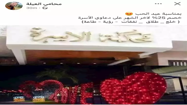 بمناسبة الفلانتين.. محام يقدم خصم 25% على قضايا الأسرة