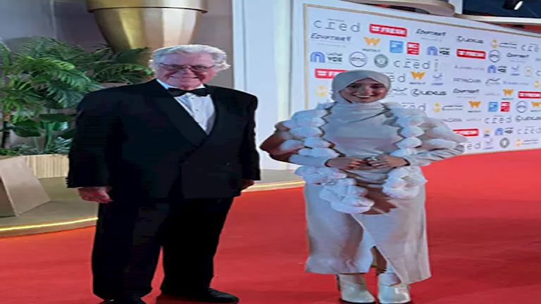 ظهر الفنان حسين فهمي رفقة زوجته على السجادة الحمراء خلال حفل ختام مهرجان القاهرة السينمائي، في دورته الـ46 بإطلالة جذابة.