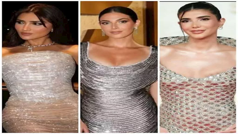 ظهرت الفنانة رزان جمال رزان جمال بفستان طويل لامع باللون الفضي بصيحة الظهر المكشوف، جاء بقصة انسيابية ومزينا بتطريزات لامعة، واختارت مكياجا هادئا بدرجات النيود مع تسريحة شعر مرفوعة، ونسقت مع إطلالتها حذاء فضيا أنيقا، إضافة إلى أقراط طويلة وخاتم.