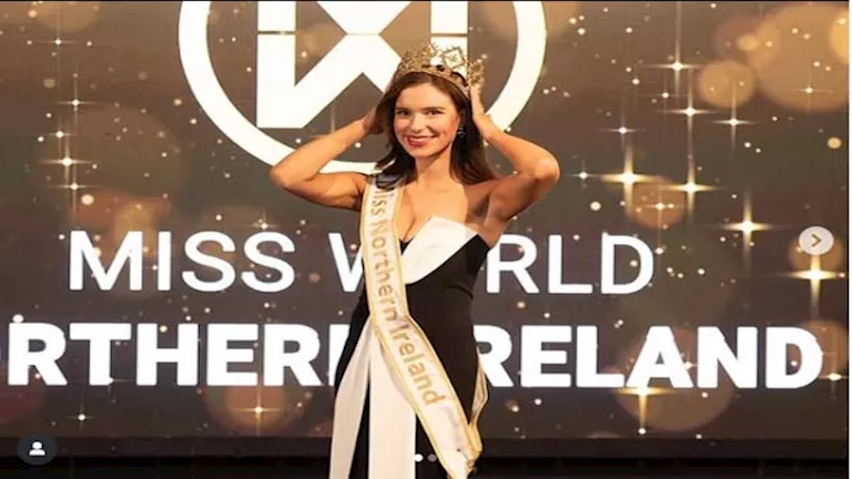 توجت كارلي ويلسون الطالبة في جامعة أولستر والبالغة من العمر 23 عاما من راثفريلاند بلقب ملكة جمال أيرلندا الشمالية لعام 2025 في حفل أقيم بفندق بأوروبا.