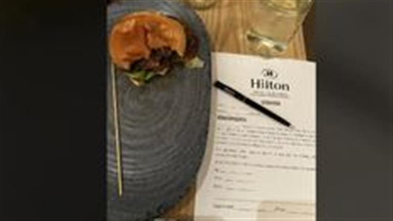 وقال في منشور على موقع Redditـ إنه طلب همبرجر متوسط الحجم في أحد مطاعم فندق هيلتون وقام النادل بتقديمه دون تعليق، ومع ذلك، بمجرد أن تناول القطعة الأولى من الوجبة، عاد الخادم بقطعة من الورق وقلم، بحسب ndtv.