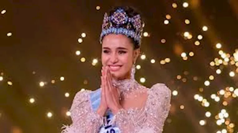 فستان مزين بالورود.. ملكة جمال العالم 2025 بإطلالة جريئة