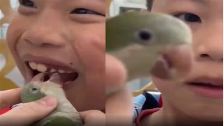 فيديو أثار جدلا.. ببغاء يستخرج سنا فاسدا من فم طفل