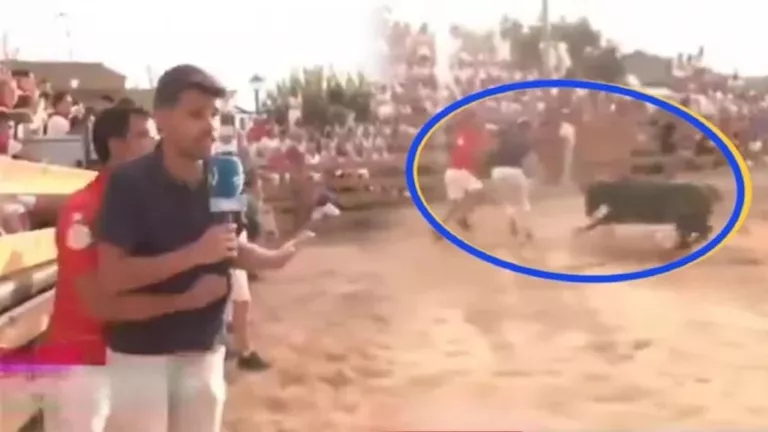 وشهدت بلدة سيسما في إقليم نافارا الإسباني، لحظات مرعبة خلال احتفالات عيد شفيعة البلدة العذراء نييڤاس، حيث كان الصحفي شابير إجويا يقدم تقريراً لبرنامج Quédate عبر قناة Euskal Telebista، عندما وجد نفسه فجأة في مواجهة مباشرة مع ثور هائج، بحسب موقع ladbible.
