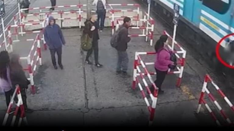 وبينما كان على وشك الدخول إلى مسار القطار، تعرض لإصابة مفاجئة على جانب الشارع، ما دفعه للتراجع بسرعة.