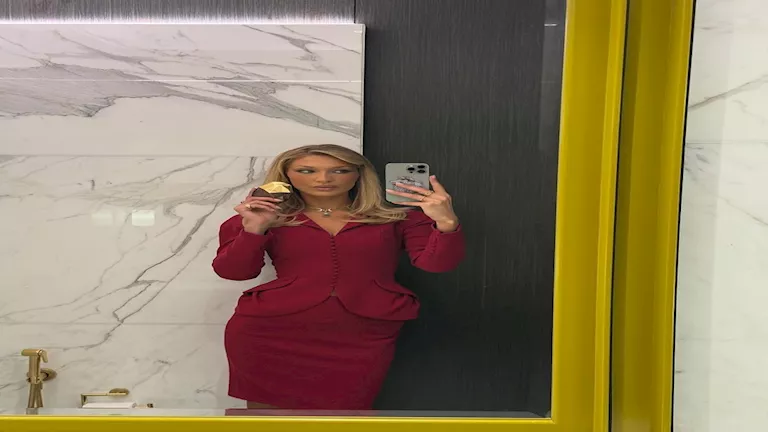 ظهرت بيلا بإطلالة ناعمة، مرتدية فستان بليزر أحمر ناري بقصة ضيقة على الجسم، مع مكياج قوي تميز بأحمر شفاه باللون الأحمر الناري، وترك خصلات شعرها منسدلة على الجانبين.