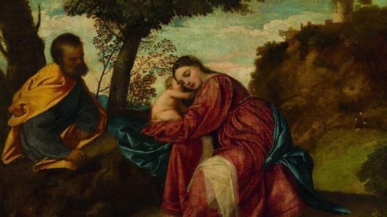 حسب حديث هنري بيتيفر، نائب الرئيس الدولي للوحات كبار الفنانين القدامى في دار كريستيز العالمية للمزادات، لوكالة «رويترز»، تُعرف اللوحة باسم “استرح في الرحلة إلى مصر” للفنان الإيطالي تيتيان، ورسمت عام 1510، عندما كان تيتيان في سن العشرين فقط.