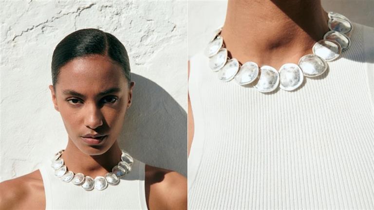 تمثل القلادة ذات الصفائح المعدنية نجمة الإكسسوارات النسائية في ربيع وصيف 2024 لتمنح المرأة إطلالة عصرية تخطف الأنظار.