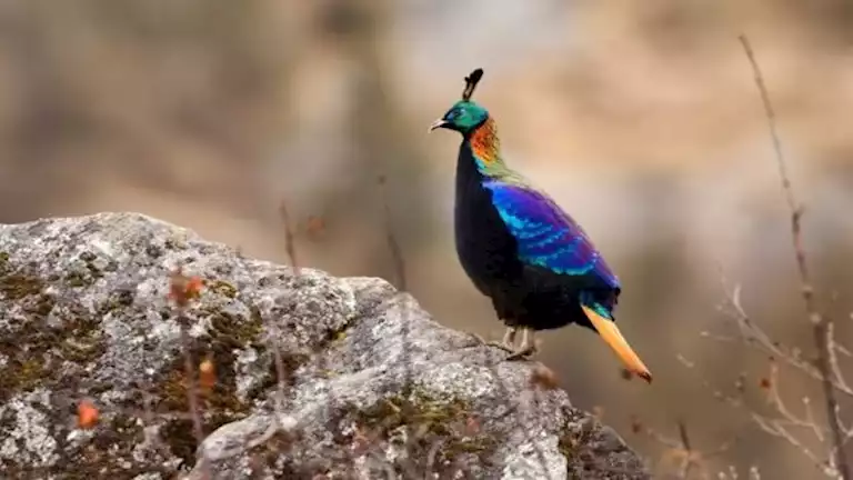 الريش الأحمر والأصفر اللامع يجعل طائر الدراج الذهبي واحدا من أجمل الطيور في العالم التي تعيش في الغابات الجبلية في غرب ووسط الصين.