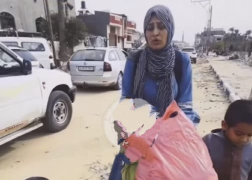 «بدي أعملهم مش هنسيهم التعليم»، كلمات أم فلسطينية ظلت ترددها، وهي تحمل الكتب والدفاتر ماضية في طريقها، تحاول أن تنأى بأولادها بعيدًا عن جيش الاحتلال الإسرائيلي الذي لا يعرف دين ولا إنسانية، لا تعرف وجهتها، لكنها تطلق الصرخات في وجه جرائمه الوحشية، إذ بعثت استغاثة مليئة بالحزن والأمل معًا، طالبة من الجميع الدعاء، مصممة على رسالتها كأم ومعلمة.