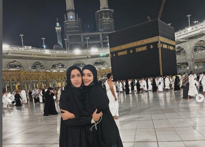 بسمة بوسيل تؤدي العمرة مع والدتها