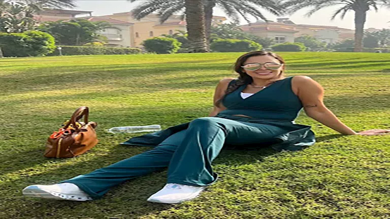 وظهرت داليا بإطلالة كاجوال مميزة، ارتدت بنطلون وتوب متناسقين باللون الأخضر مع حذاء رياضي أبيض