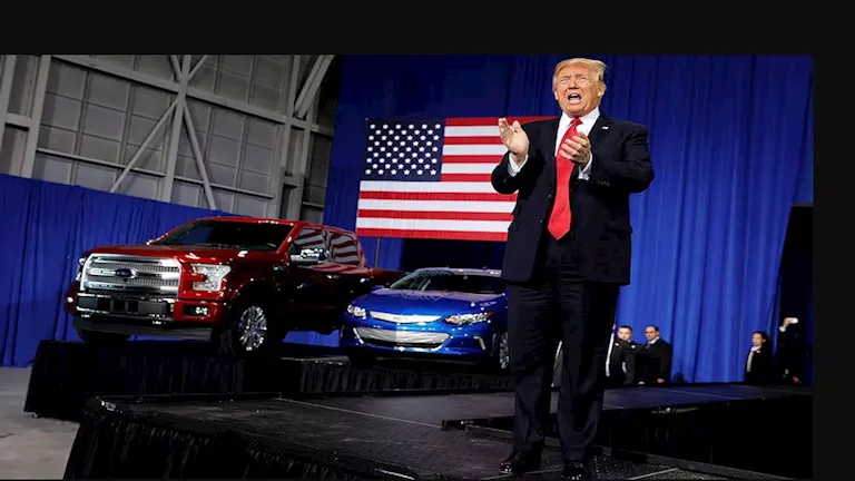 بحضور مسئولي فورد وستيلانتس| ترامب يعلن خفض قواعد كفاءة استهلاك الوقود