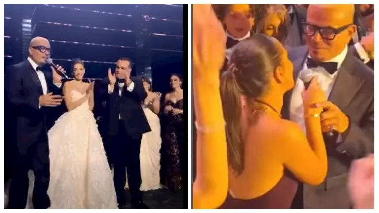 وشارك عمرو دياب في الغناء بحفل الزفاف ابنته جنا التي قال لها أمام الحضور: “صحابها قالولي هي اللي نجحتك، يلا روحي اقفي جنب العروسة صحبتك”.