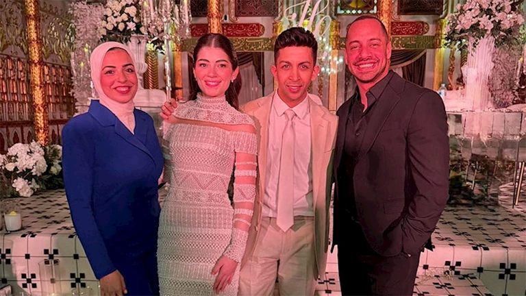 شارك الفنان عمرو وهبة متابعيه، صورة جديدة من حفل زفاف الفنانة الشابة ليلى زاهر والمنتج هشام جمال.