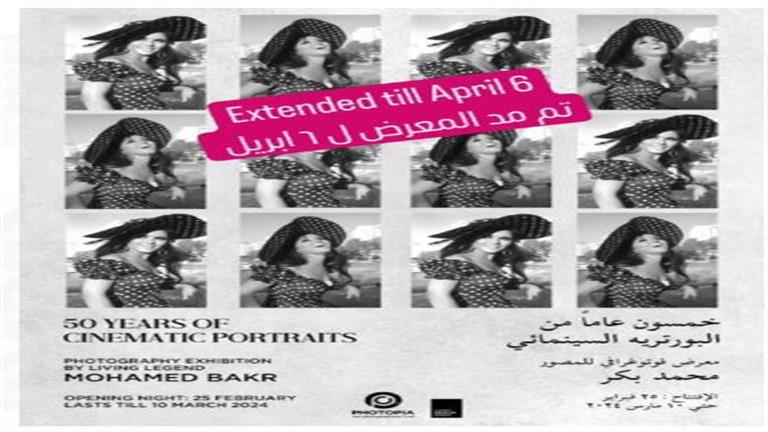 أعلنت مروة أبو ليلة المؤسسة والمديرة التنفيذية لمؤسسة فوتوبيا عن مد فترة معرض “خمسون عاما من البورتريه السينمائي” بسبب الإقبال الشديد على المعرض، الذي أقيم تكريما للمصور الفوتوغرافي الكبير محمد بكر.