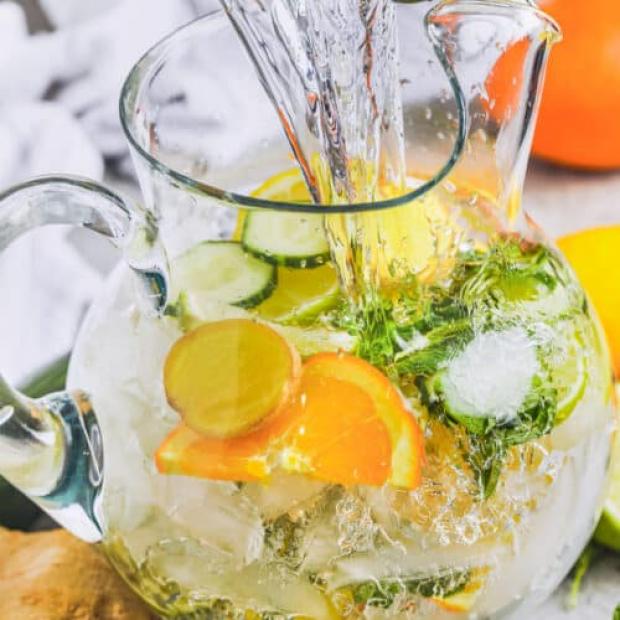 مكونة من شرائح ليمون وخيار وورق نعناع في ماء بارد، وتساعد على ترطيب الجسم والتخلص من السموم.