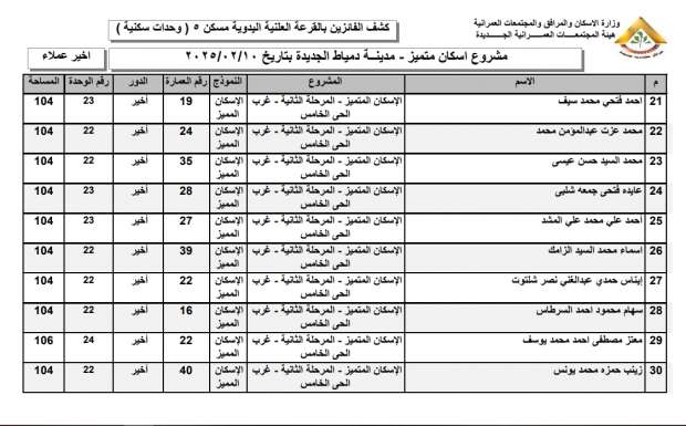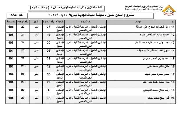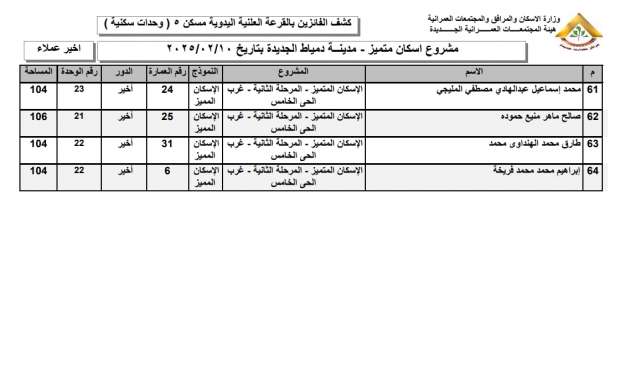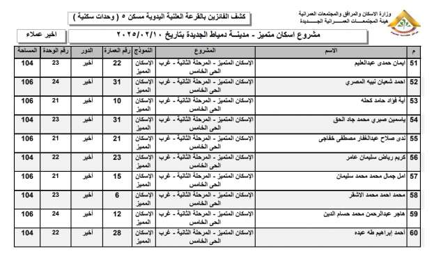 أسماء الفائزين في قرعة وحدات الإسكان المتميز 2025 بمدينة دمياط الجديدة
