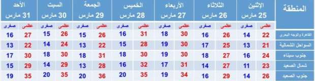 تأتي درجات الحرارة العظمى والصغرى في المحافظات لمدة أسبوع كالآتي:
