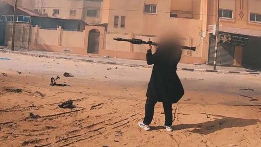 صورة لمقاتل في كتائب القسام والذي أطلق عليه ناشطون لقب: #المقاتل_الأنيق