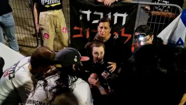 واجتمعت عائلات المحتجزين في ميدان حاتافيم بتل أبيب، حيث بدأت مواجهات عنيفة بين المتظاهرين وشرطة الاحتلال أمام إحدى البوابات.