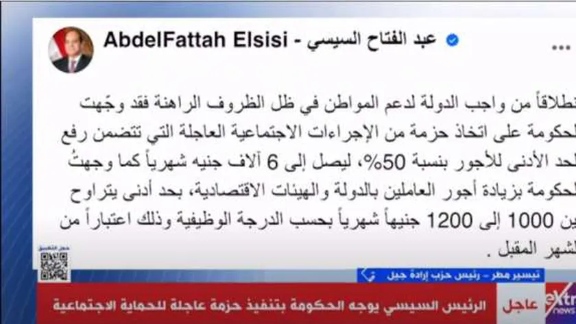 وأضاف مطر خلال مداخلة هاتفية على فضائية «اكسترا نيوز»، أن الحزمة بما فيها «حياة كريمة» تدل على أن الرئيس أب يشعر بظروف أبنائه، ووقف بجانب أبنائه في ظل الظروف الاقتصادية الراهنة التي يمر بها العالم أجمع، متابعًا: «القرار أسعد الأحزاب والمصريين ككل، الرئيس السيسي حاسس بينا وإحنا كمصريين كلنا سعداء».
