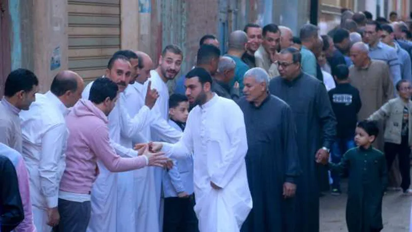 في صف طويل يمتد لعشرات الأمتار، يقف أهالي قرية طنبول بمحافظة الدقهلية، كتف في كتف بالعيش والملح، ليتبادلوا التهاني بمناسبة عيد الفطر المبارك، وتعبير عن مدى الترابط بين أبناء القرية، من خلال أكل العيش والملح مع بعضهم.