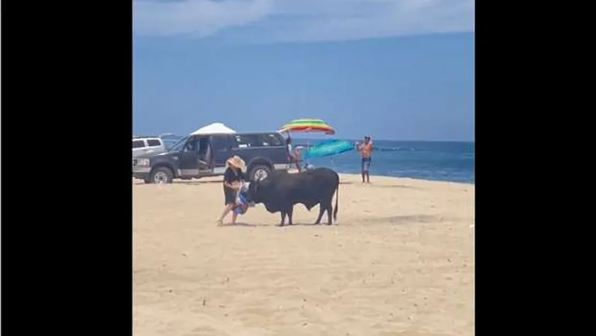 ثور يهاجم سيدة 6 مرات على شاطئ في المكسيك.. «عض الإيد اللي اتمدت له»