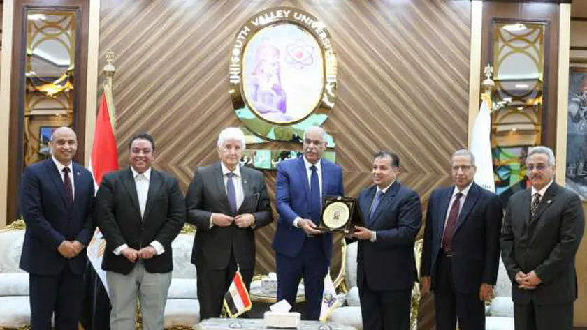 جامعة جنوب الوادي تهدي درع الجامعة لرئيس الاتحاد المصري لكرة القدم
