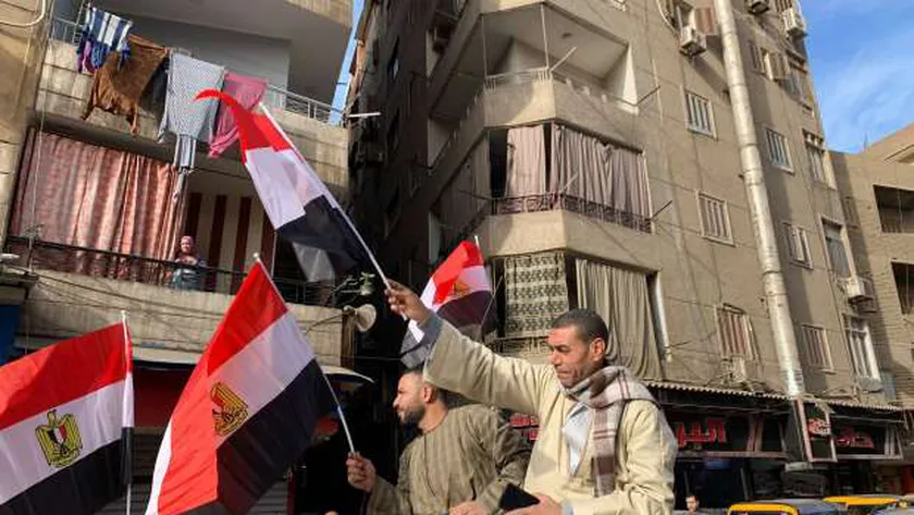 مواطنون يرفعون علم مصر من السيارات خلال توجههم للجان الانتخابية في إمبابة