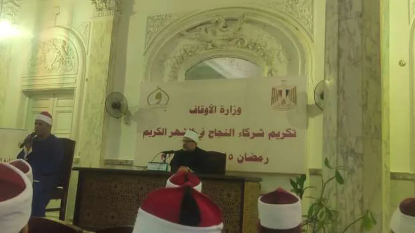 شهد محمد مختار جمعة وزير الأوقاف، اليوم، تكريم شركاء النجاح في الشهر الكريم من موفدي الأوقاف من الأئمة والقراء بالمجلس الأعلى للشئون الإسلامية، وذلك بحضور هشام عبدالعزيز علي رئيس القطاع الديني، ومحمد عزت الأمين العام للمجلس الأعلى للشئون الإسلامية، وأيمن أبو عمر رئيس الإدارة المركزية لشئون الدعوة.