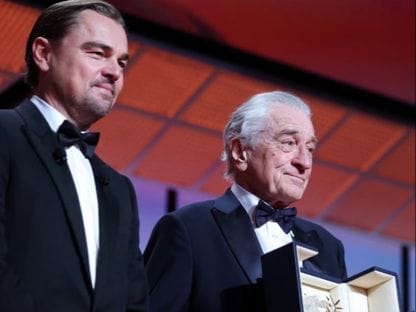 وفي واحدة من أكثر اللحظات المنتظرة على السجادة الحمراء، قدّم خلال حفل افتتاح مهرجان كان النجم الأميركي ليوناردو دي كابريو جائزة السعفة الذهبية الفخرية لأسطورة التمثيل روبرت دي نيرو وذلك بعد أربعة عشر عاما من ترؤسه لجنة التحكيم عام 2011، وقال ديكابريو أثناء تقديمه الجائزة “يشرفني أن أكون هنا لتكريم شخص كان نموذجا ومثلا أعلى لجيل كامل من الممثلين: روبرت دي نيرو”.