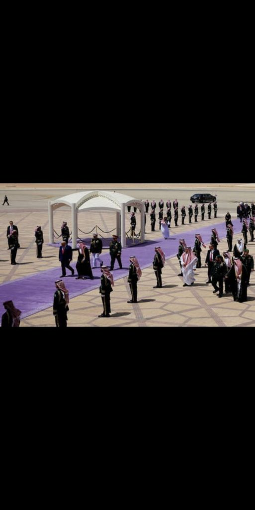 في خطوة لافتة ومغايرة للتقاليد الدبلوماسية المعتادة، شهدت العاصمة السعودية الرياض استقبال الرئيس الأمريكي دونالد ترامب على سجاد باللون البنفسجي بدلاً من الأحمر التقليدي.