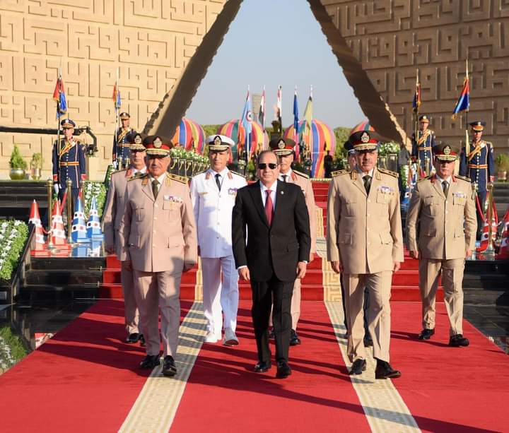 في إطار الاحتفالات بالذكرى الحادية والخمسين لانتصارات أكتوبر المجيدة؛ السيد الرئيس عبدالفتاح السيسى رئيس الجمهورية القائد الأعلى للقوات المسلحة يضع أكاليل الزهور على النصب التذكارى لشهداء القوات المسلحة وقبري الزعيمين محمد أنور السادات وجمال عبد الناصر.