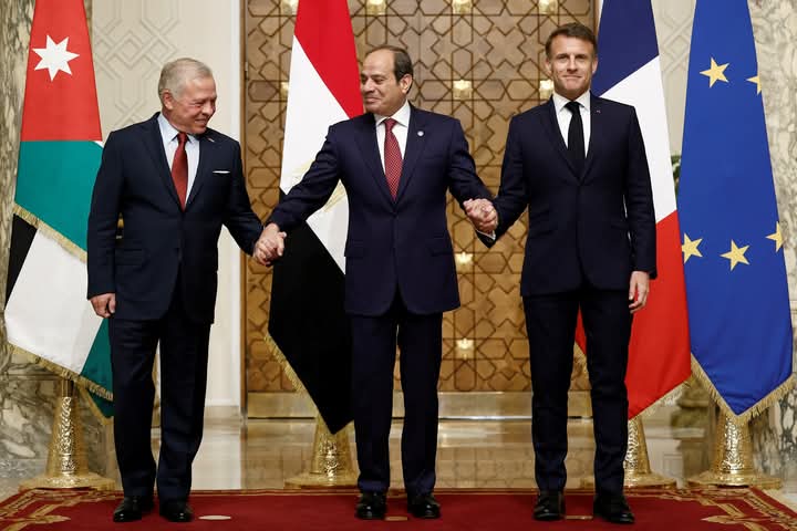 انطلقت اليوم في العاصمة المصرية القاهرة أعمال القمّة الثلاثية التي تجمع بين مصر والأردن وفرنسا، بمشاركة الرئيس عبد الفتاح السيسي، والعاهل الأردني الملك عبدالله الثاني، والرئيس الفرنسي إيمانويل ماكرون، لبحث تطورات الأوضاع الإقليمية، وعلى رأسها المستجدات في الأراضي الفلسطينية، لا سيما في قطاع غزة والضفة الغربية.