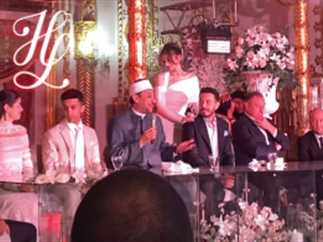 وكان من أبرز الحضور الكابتن محمود الخطيب، رئيس مجلس إدارة النادي الأهلي، حيث حرص على تهنئة العروسين والتقاط الصور التذكارية معهما.