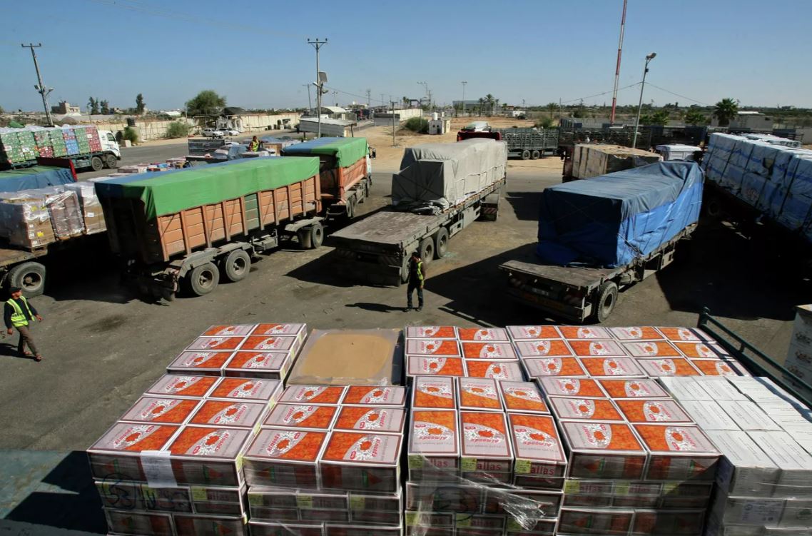 دخول شاحنات مساعدات إنسانية إلى غزة عبر معبر كرم أبو سالم