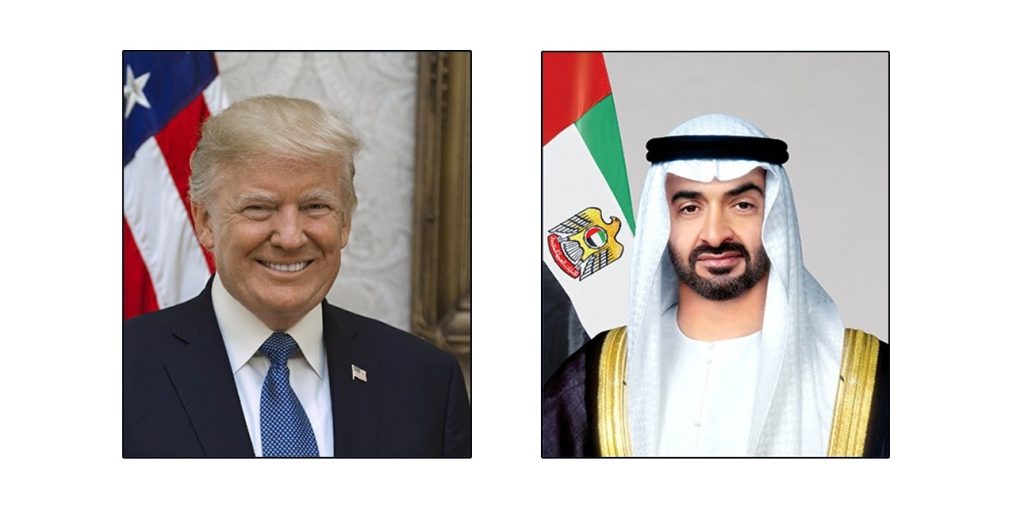 بحث صاحب السمو الشيخ محمد بن زايد آل نهيان رئيس الدولة ،حفظه الله، و دونالد ترامب رئيس الولايات المتحدة الأميركية اليوم – خلال اتصال هاتفي – العلاقات الإستراتيجية التي تجمع البلدين والعمل على تعزيزها في جميع المجالات بما يخدم مصالحهما المشتركة ، وذلك في إطار الشراكة الممتدة التي تجمع البلدين.