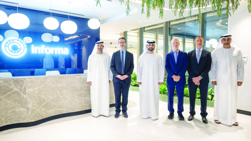 وكان في استقبال سموه لدى وصوله إلى المقر، يرافقه المدير العام لدائرة الاقتصاد والسياحة في دبي المدير العام لسلطة مركز دبي التجاري العالمي، هلال سعيد المرّي، كل من: رئيس مجلس إدارة «إنفورما»، جون ريشتون، والرئيس التنفيذي للمجموعة، اللورد ستيفن كارتر، ورئيس إنفورما الشرق الأوسط والهند وتركيا، بيرت هال.