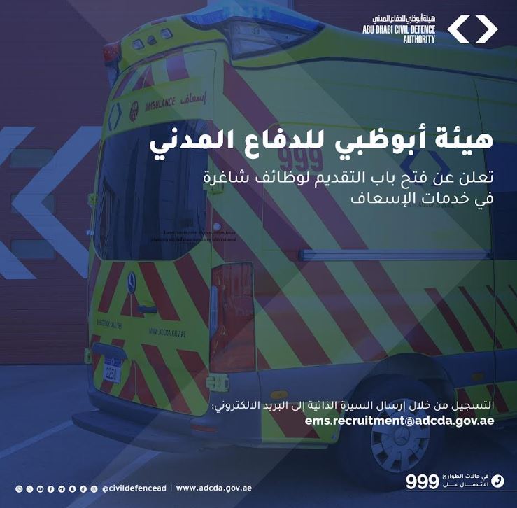 «أبوظبي للدفاع المدني» تعلن عن وظائف شاغرة في 6 مجالات صحية