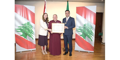 جاء ذلك خلال كلمته في حفل تكريمه بـ«الوسام البطريركي»، الذي قلده إياه بطريرك أنطاكية وسائر المشرق للروم الملكيين الكاثوليك البطريرك يوسف العبسي، في احتفال أقامه النائب البطريركي للروم الملكيين في الكويت والخليج العربي الأرشمندريت بطرس غريب، في مقر السفارة اللبنانية.