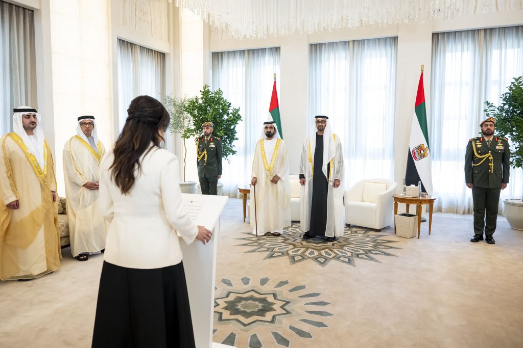 وقد أدى اليمين – خلال المراسم التي أقيمت اليوم في قصر الوطن في أبوظبي – كل من أحمد بن علي الصايغ وزير الصحة ووقاية المجتمع ولانا زكي نسيبة وزيرة دولة وسعيد بن مبارك الهاجري وزير دولة.