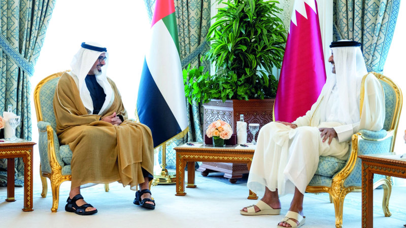 وكان سموّ الشيخ خالد بن محمد بن زايد آل نهيان، ولي عهد أبوظبي، وصل أمس، إلى الدوحة في زيارة رسمية لدولة قطر الشقيقة.