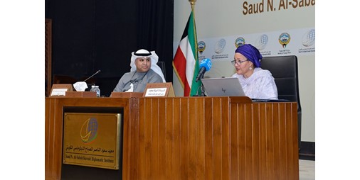 جاء ذلك خلال محاضرة لنائبة الأمين العام نظمها معهد «سعود الناصر الصباح» الديبلوماسي الكويتي التابع لوزارة الخارجية بعنوان «دور الديبلوماسية في تحقيق أهداف التنمية المستدامة» بحضور مساعد وزير الخارجية لشؤون المعهد السفير ناصر الصبيح وعدد من رؤساء البعثات الأجنبية والديبلوماسيين.