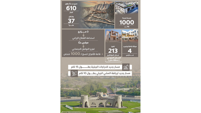وتشمل المشروعات التطويرية في منطقة حتّا، التوسع في تنفيذ مسارات الدراجات الهوائية، ومن المشروعات الجاري تنفيذها أيضاً، مشروع تطوير مستشفى حتّا، ونادي حتّا الرياضي، وصيانة السدود في المنطقة.
