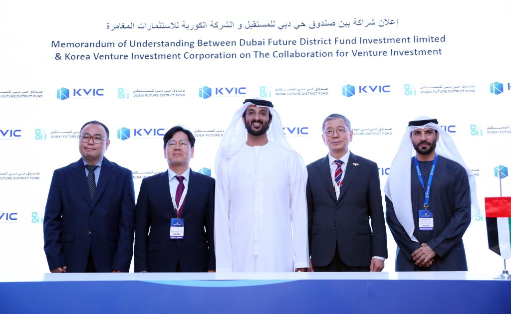 أما الاتفاقية الموقعة بين “صندوق حي دبي للمستقبل DFDF” وبين “مؤسسة كوريا للاستثمارات المغامرة KVIC” فتهدف إلى تعزيز التعاون بين الطرفين في مجال الاستثمارات المغامرة، وتشارُك الرؤى والخبرات حول الشركات الناشئة وتعزيز توسعهما ونموهما العالمي، فضلاً عن تبادل دعوات المشاركة في الفعاليات الدولية ذات الصلة.